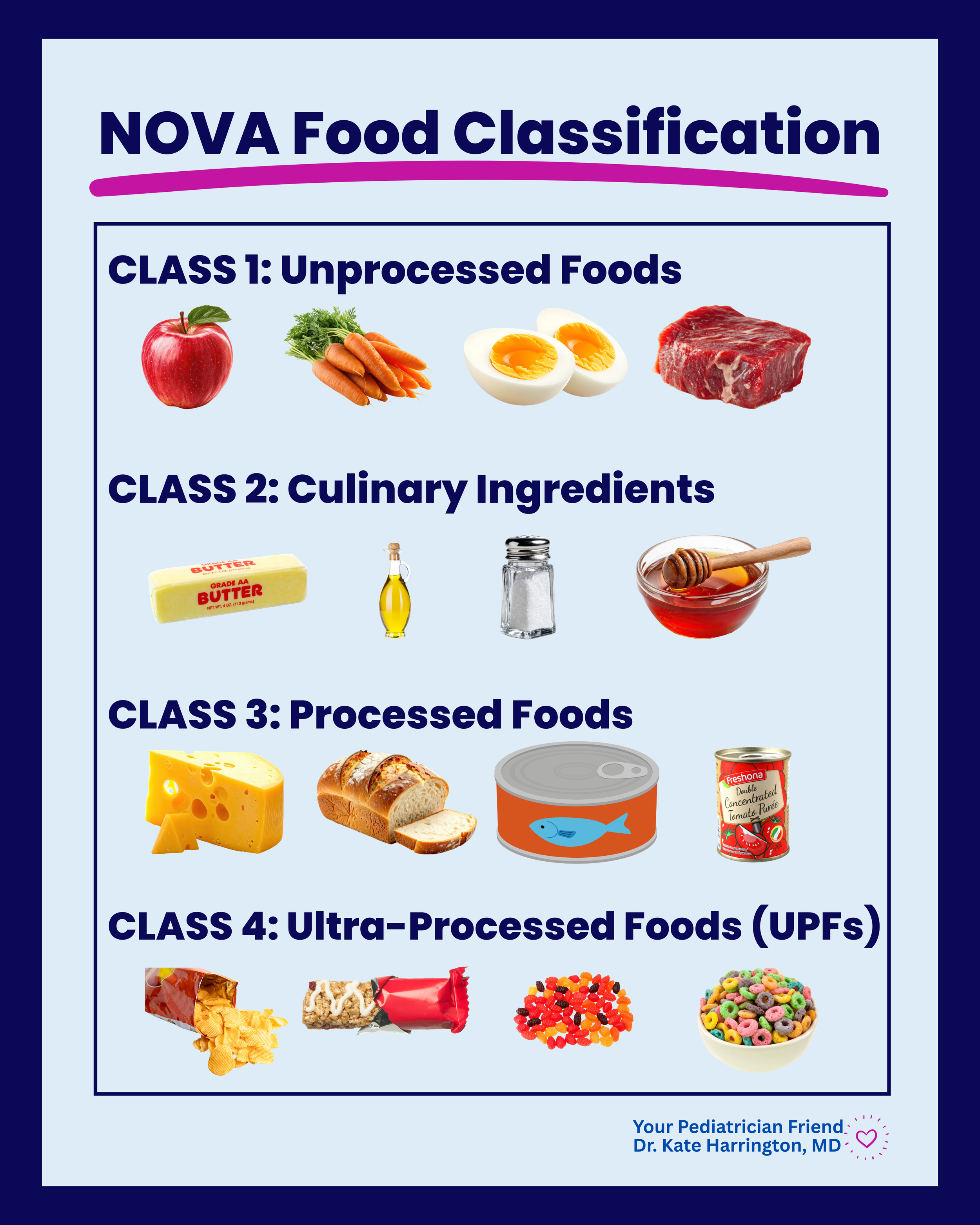 The key thing to know about the NOVA system is that the problem isn't processing itself—it's the degree and type of processing. Frozen vegetables are processed. Plain yogurt is processed. Canned beans are processed. But none of these are a concern! The concern is Group 4— products engineered in a way that goes way beyond anything you can do in your own kitchen.
