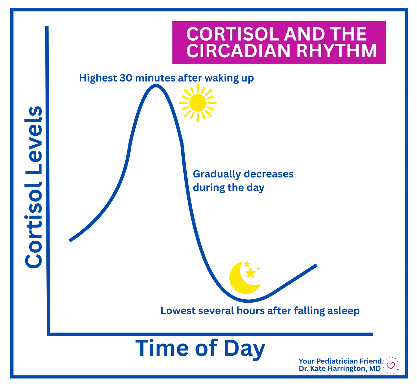 So just imagine: You put your sick kid to bed at 7 pm. At 10 pm, you are exhausted and settling in for a nice night’s sleep. But, that is exactly when your child’s cortisol levels have reached their lowest point. And symptoms flare. Ugh!